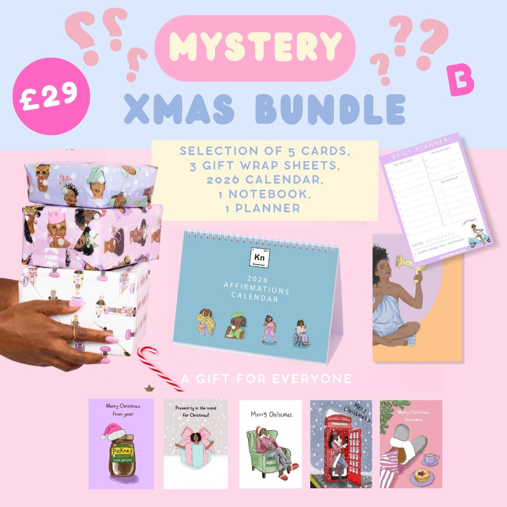 Mystery Christmas Bundle B (5 cards, 3 Gift wrap sheets, 1 A5 Notepad, 1 Notebook, 1 Desk Calendar)