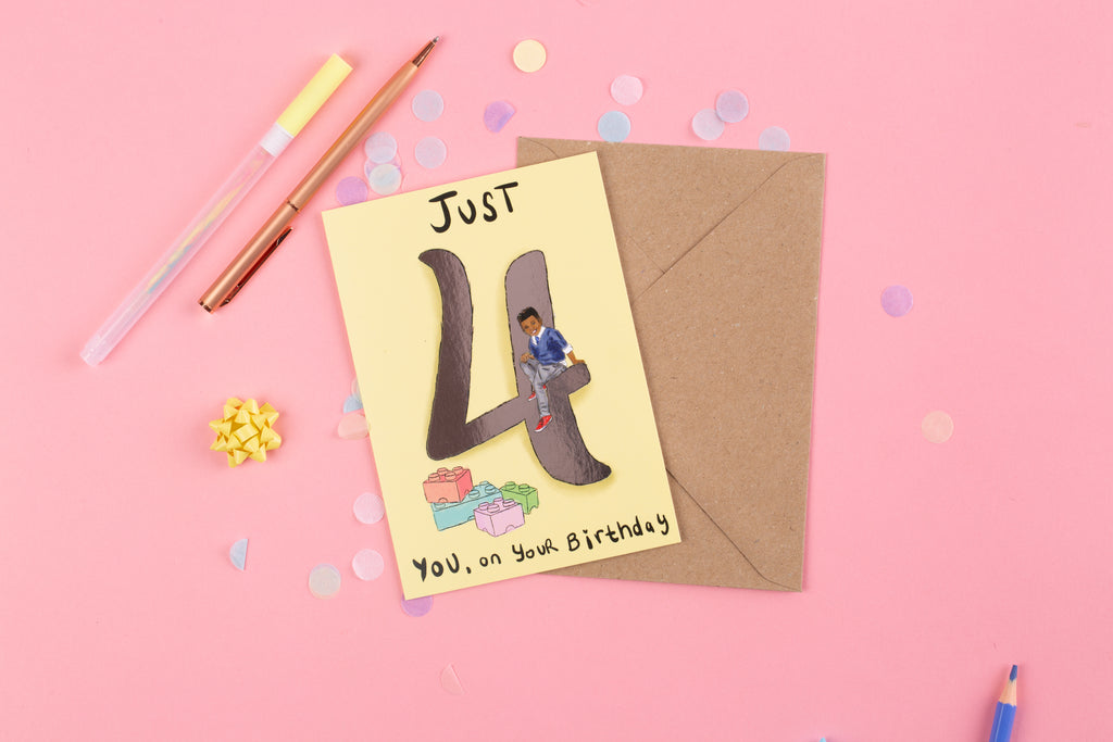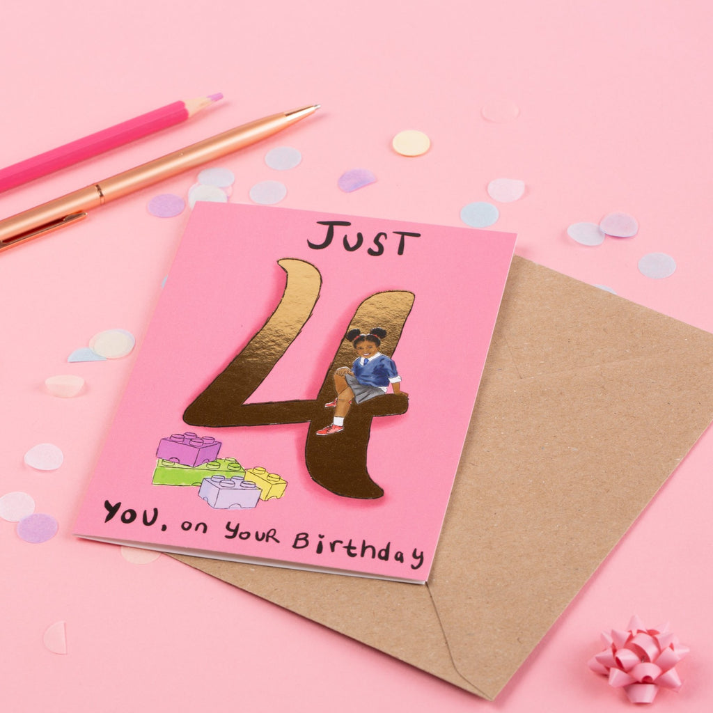 For that beautiful child's FOURTH birthday. Card available for boy and for girl. The large number on the card has reflective foil detail to make the gifting that extra bit special x
