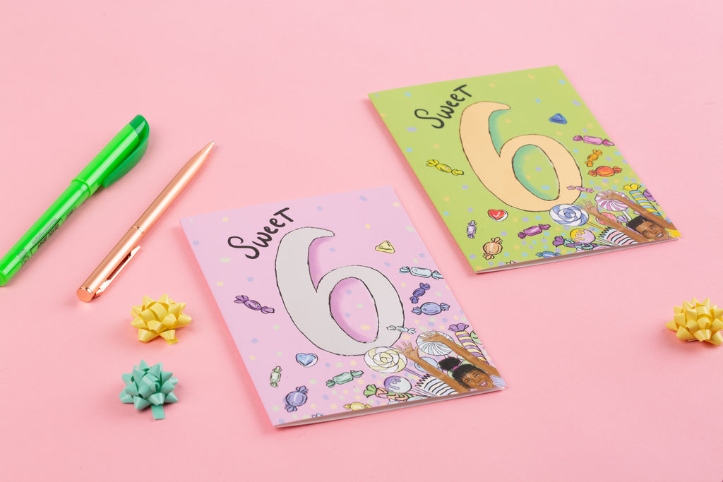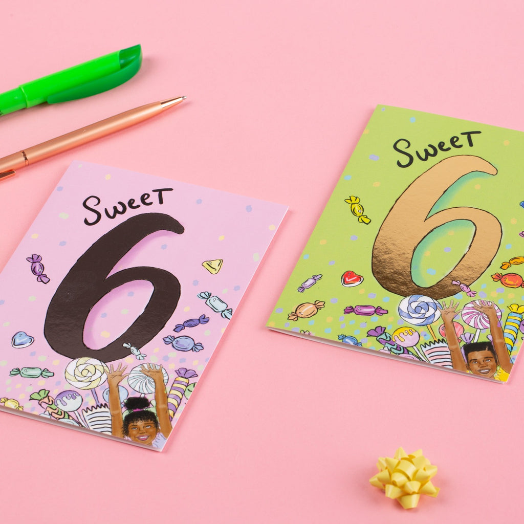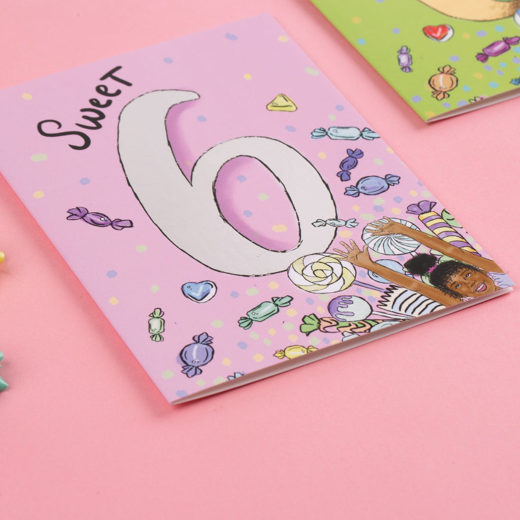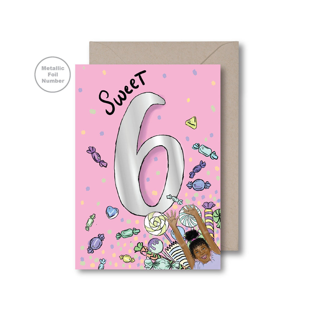 For that 6 year old that loves SWEETS! Card available for boy and for girl. The large number on the card has reflective foil detail to make the gifting that extra bit special x