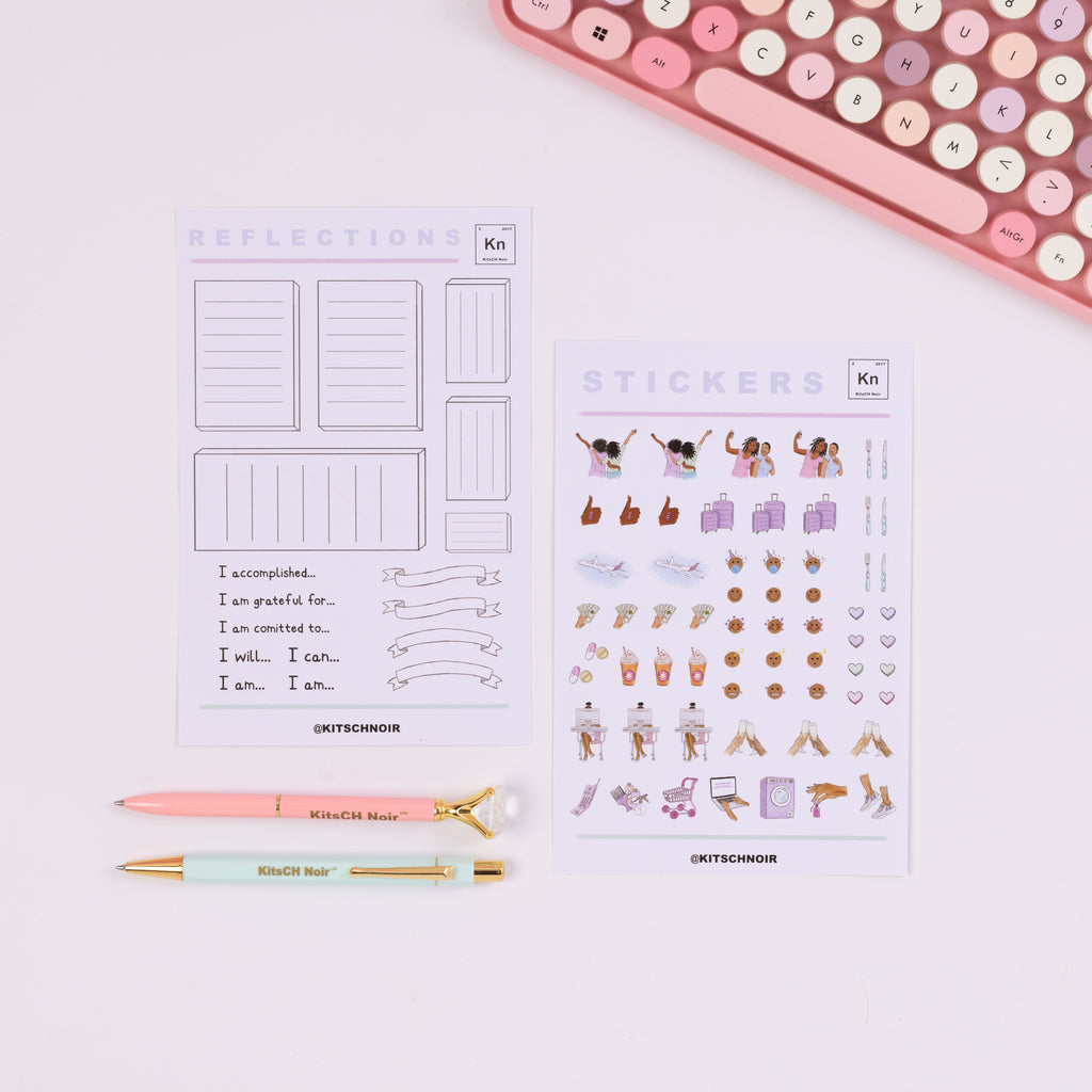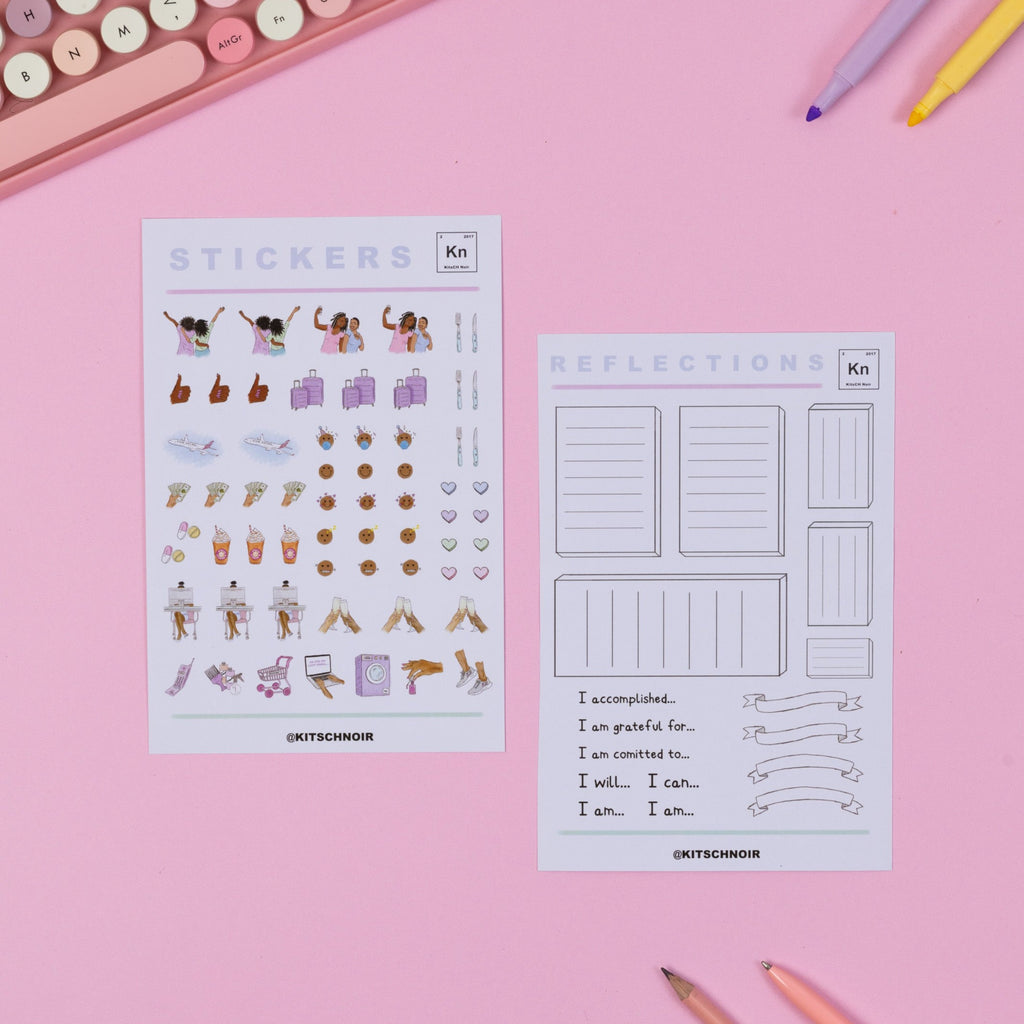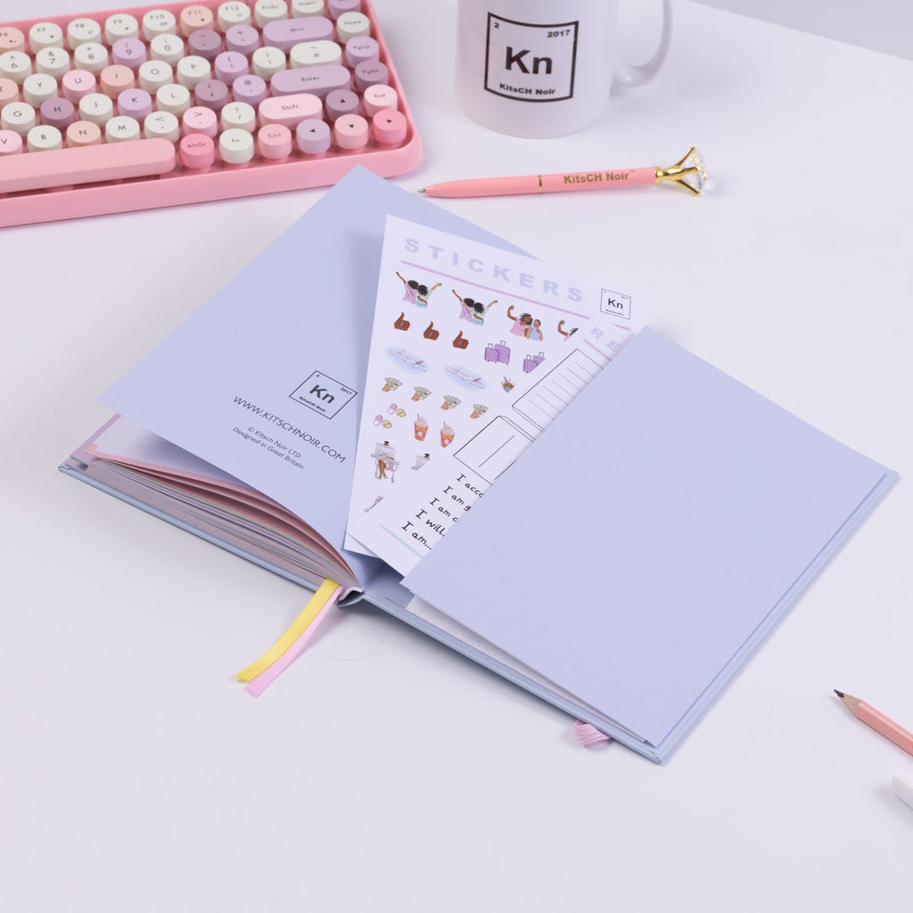 Each sticker sheet provides boxes and banners to help you keep your reflections neat, tidy and presentable! One sheet provides some great sentence starters which will help you to recall beautiful, positive memories in your diary or journal. We recommend using these stickers on the 'Reflection Page' in your affirmations diary!