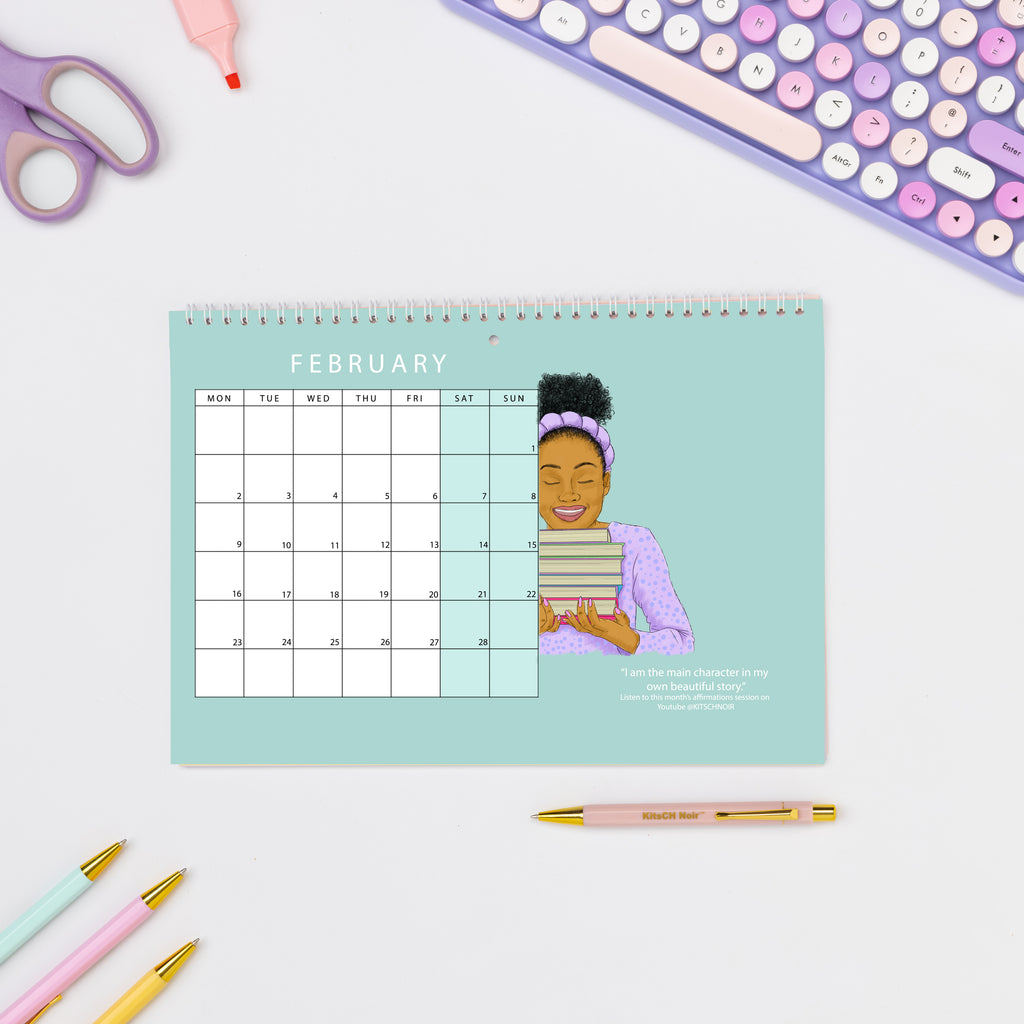 Step into 2026 with a celebration of beauty, resilience, and joy! Our Affirmations Calendar features twelve months of stunning hand-drawn illustrations, showcasing Black women in all their brilliance, grace, and individuality. Each month presents a fresh and vibrant piece of artwork, capturing diverse moods and styles that reflect the strength and beauty within.